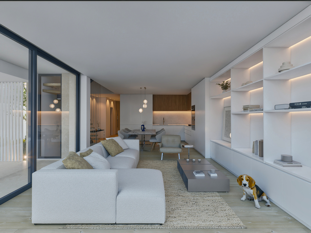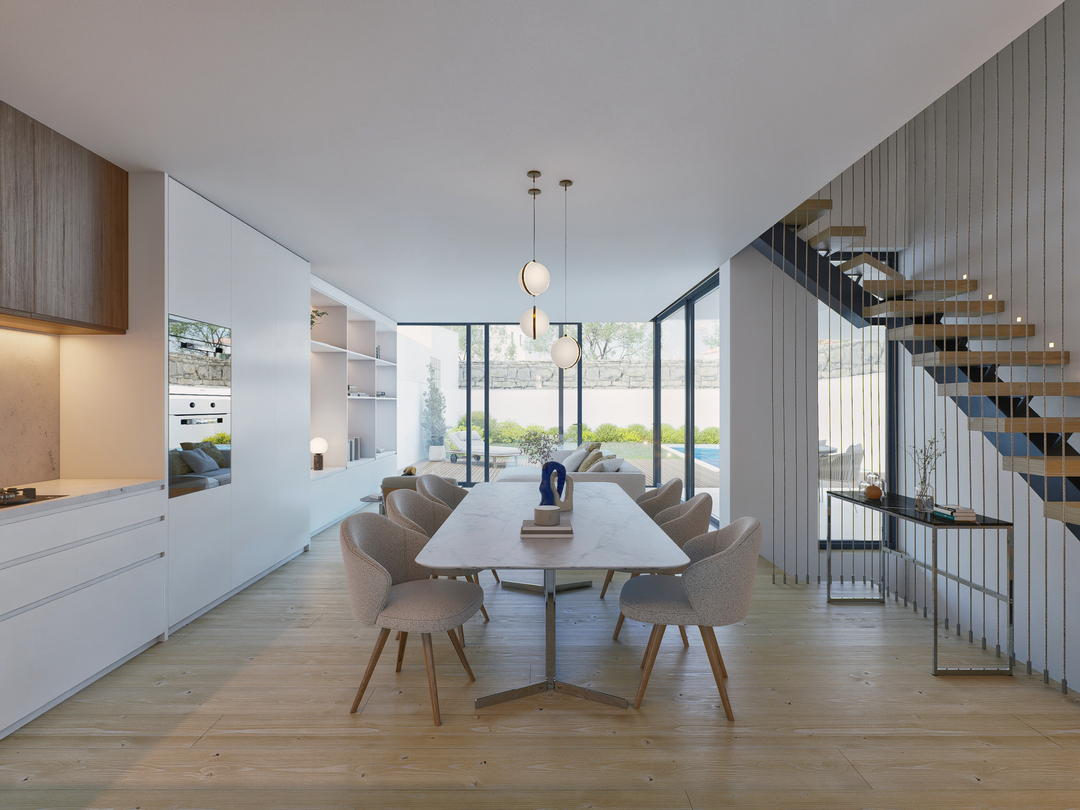 En cuanto a la tipología, la vivienda desarrollada es de tipo T3, con tres dormitorios, un espacio de oficina y una cocina y salón diáfanos. La vivienda se distribuye a lo largo de la planta 1 (planta de entrada) y la planta 2, de forma nivelada, distinguiendo, en su organización interior, los espacios sociales de los espacios íntimos/más reservados.